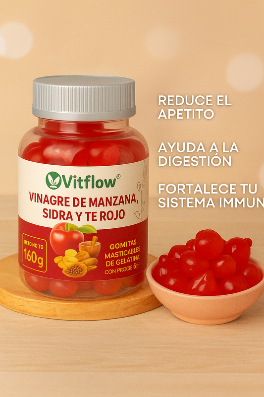GOMITAS DE VINAGRE DE MANZANA - Despídete de la hinchazón y siente tu abdomen más plano cada día.